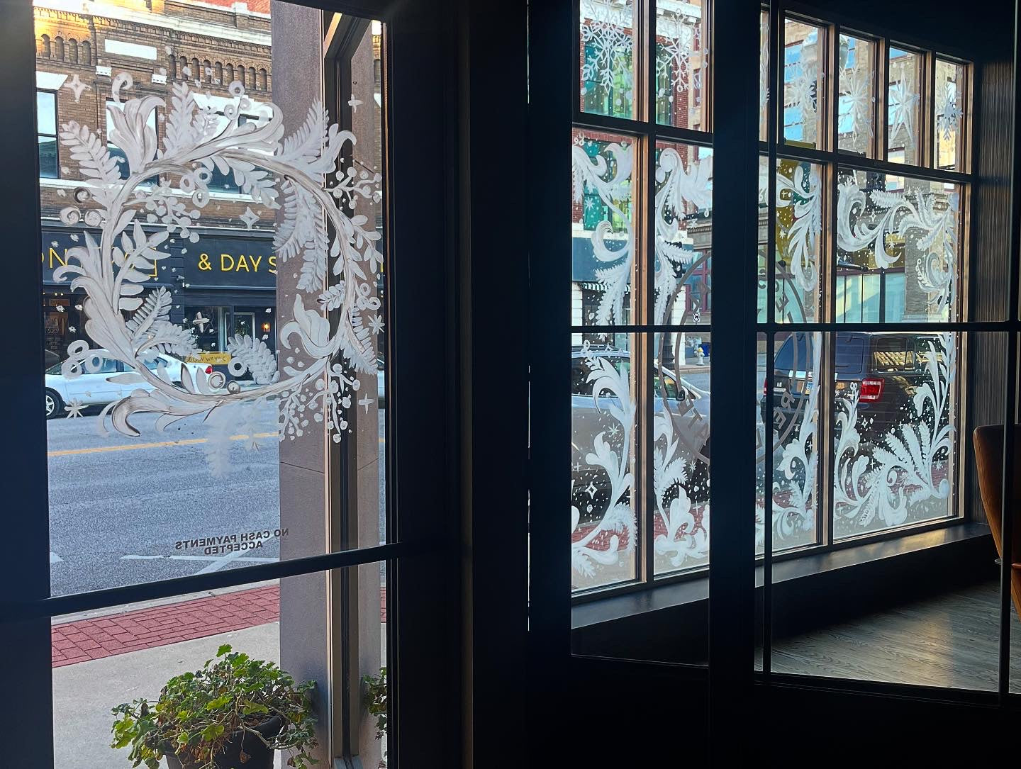 Spruce up your storefront with a little extra holiday spirit! Designs are typically done in white to suit the full winter season, but colorful window art is available upon request.