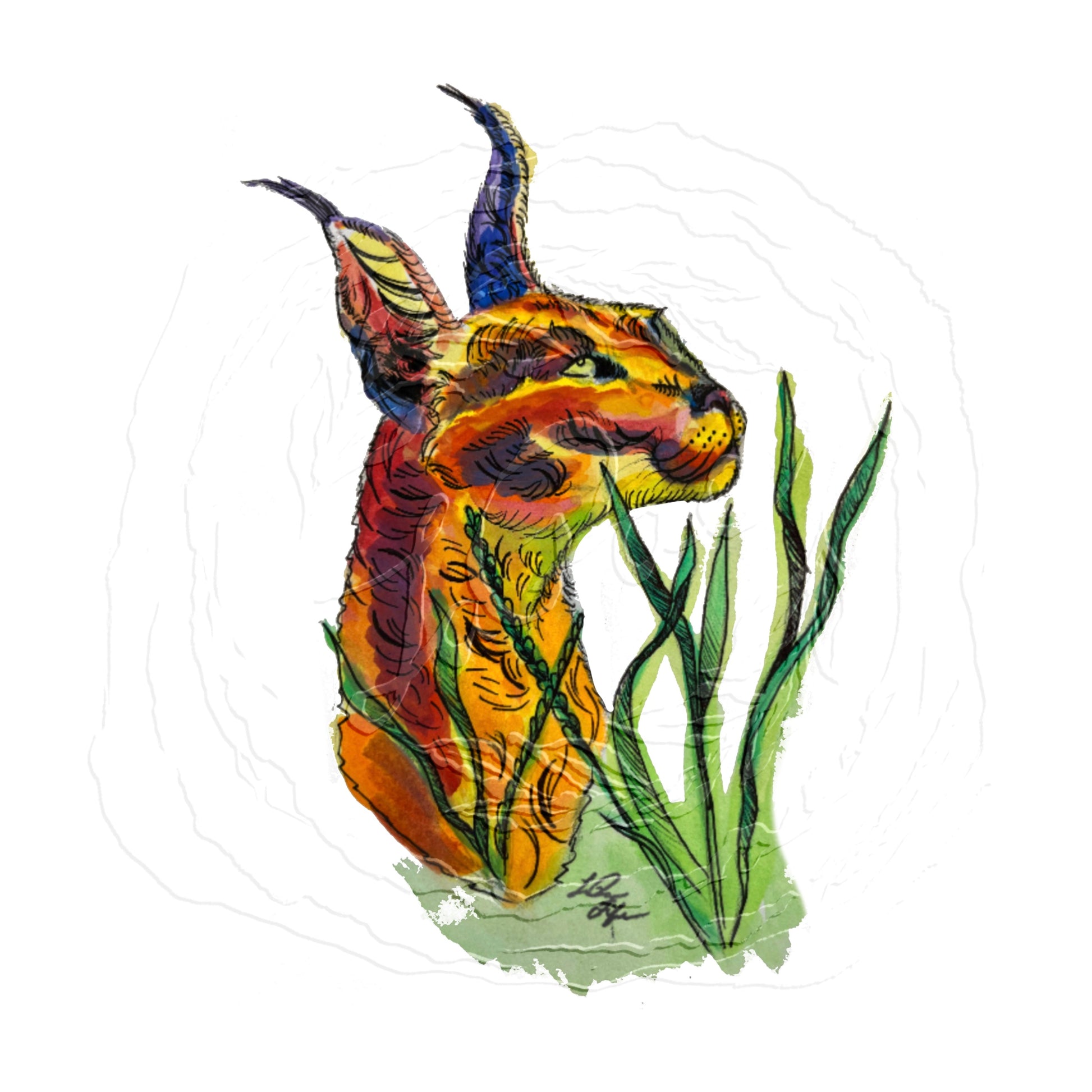 Serving as the inspiration for the Promise series, this depiction of a caracal was one of the first pieces to resonate with the artist as she explored a new style of bold line-work framing every color of the rainbow.