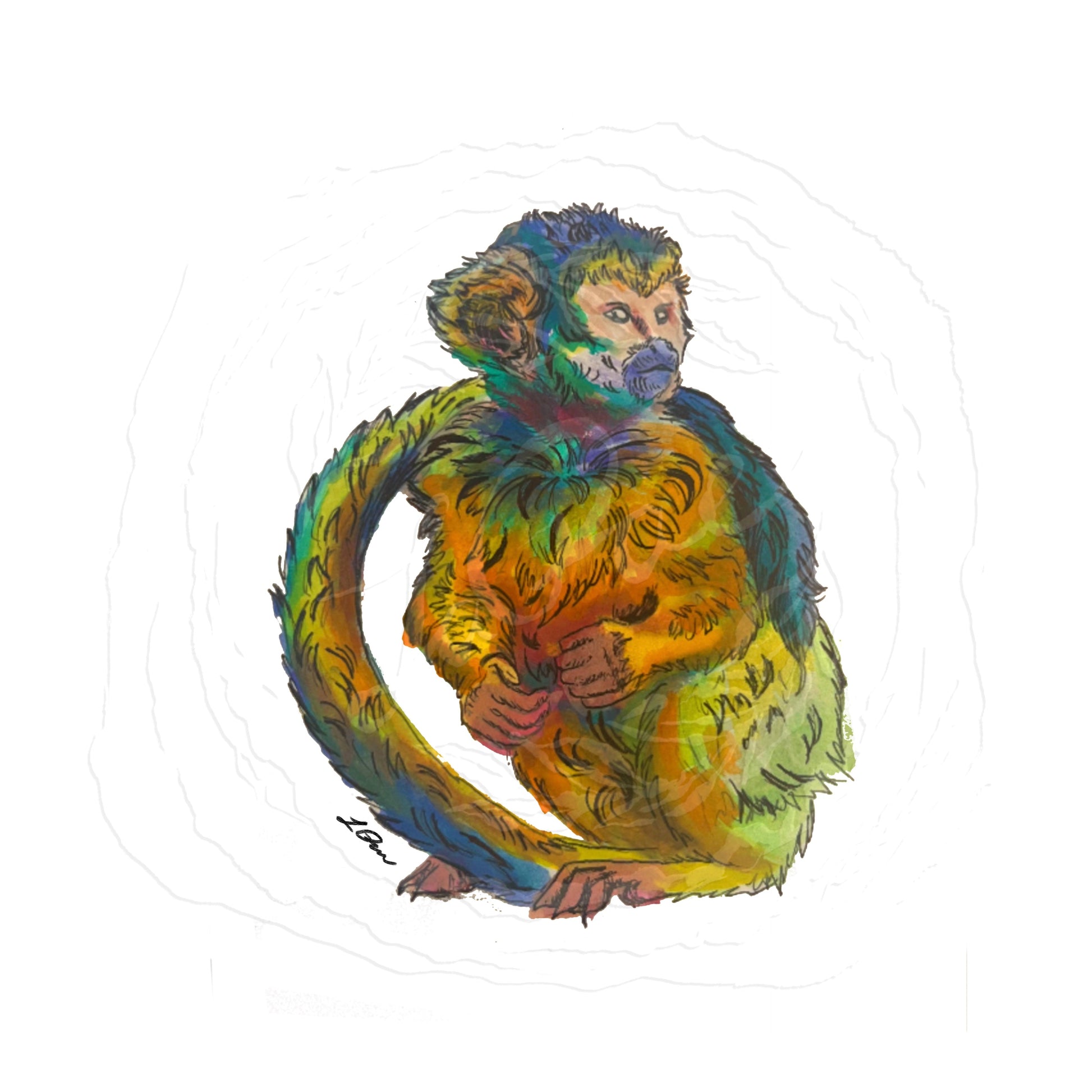 Playfully depicting a Squirrel Monkey that sits in quiet contemplation. A subtle juxtaposition.